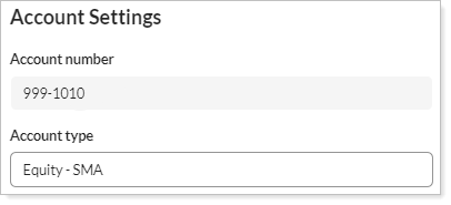 The Account Number identifies the account. For individual accounts, this is the custodian account number. This field is not editable and must be edited in the portfolio accounting system.