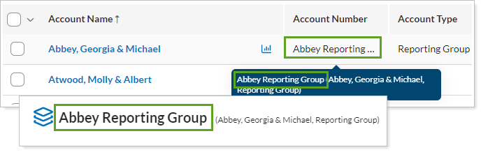 This field is shown as the name of the group and in the Account Number column on the Accounts page.