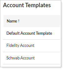 The Accounts Templates page: Displays a list of all the available account templates includes the account template name.