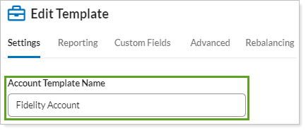 Use this field to descriptively name the account template. The name can be used to provide details about the settings configurations in the template. For example, if a firm configures most taxable accounts similarly, they might create an account template called Taxable Account. It can also be used to identify templates that apply advisor-specific settings, with names like Advisor Sanchez.
