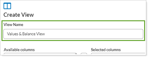Use this field to descriptively name an Accounts page view. The name can be used to provide details about the settings configurations in the view. For example, if you have a view that shows asset information you might name your view Values & Balance View.