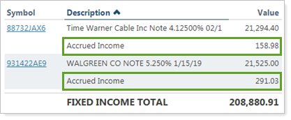 Automatically displayed in the row for every holding that has accrued interest.