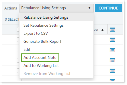 Add Account Note lets you select an account or accounts and add a note to the selected accounts.