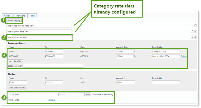 From the list, search for and select the category you want to set up for rate tiers. Click Add to add the category.