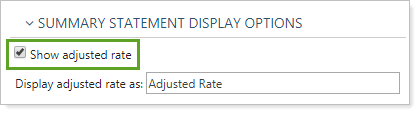 The adjusted rate is calculated by determining the weight of each rate used in the bill and then multiplying the weight by the rate and summing up the tiers. The adjusted rate is included after the billing allocation section if your Statement Display Options are set to Summary. For more information, see Billing Statement Settings.