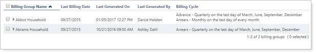 For example, billing cycle is set to Robin Russell. Only billing groups with Robin Russell as an advisor set are displayed.