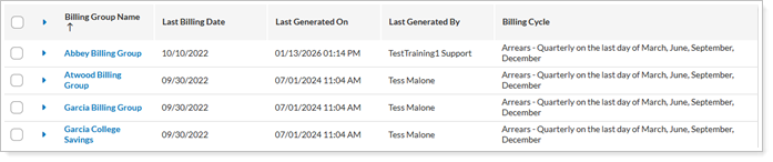To see all billing groups regardless of advisor, choose <All values> from the list.