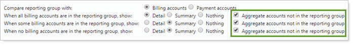 This setting allows you to combine the accounts that are not in the billing group into a single line item on the report. This is useful for keeping accounts private when your billing group and reporting groups don't have the same members.