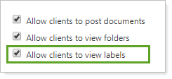 Select this check box to let clients see labels that are associated with the files in their document vault.