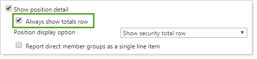 This setting allows you to include or exclude a totals row on the report or billing statement, even if the grouping only includes one item.