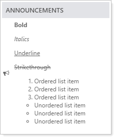 You can use basic HTML tags to add simple formatting to your announcements, including:
