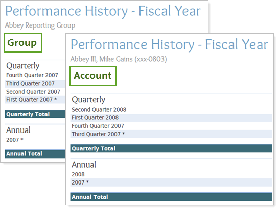 | Use Fiscal Year End for the Performance History Report Configuration at the Group and Account Level | ||||