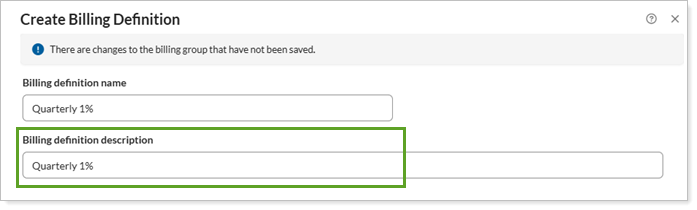 This billing definitions setting allows you to add a description to the billing definition you're creating to explain how the billing definition works.