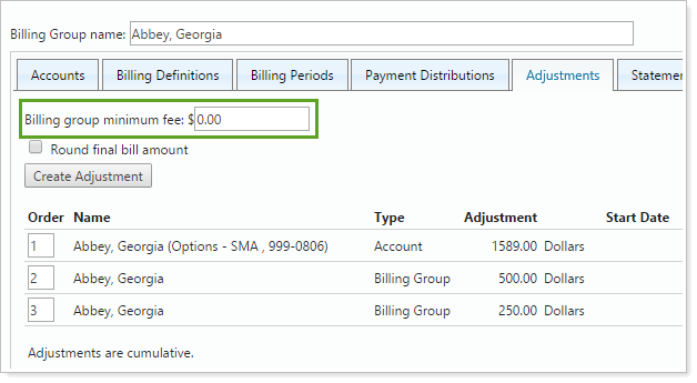 This setting allows you to set a minimum amount that clients will be charged. For example, if you charge a minimum of $10,000 per year, you'd enter that here. Then, if the fee incurred is less than this amount, Tamarac Reporting automatically assigns the fee listed in this box. If the accounts are new accounts, Tamarac Reporting will automatically prorate the minimum fee.