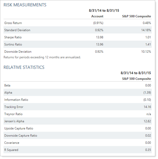 Calculate analytic values using set to daily returns, the account's statistics and risk measurements are calculated using daily returns.