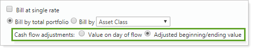 Adjusted Beginning/Ending Value.Using this method, the account's value is first approximated by taking the billable value of the account, and then it's modified by applying any prorations in reverse chronological order.
