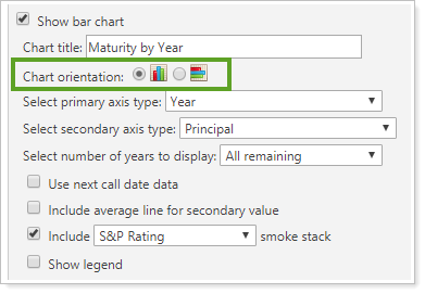 This report setting lets you determine whether the Bond Analysis report bar chart is laid out horizontally or vertically.