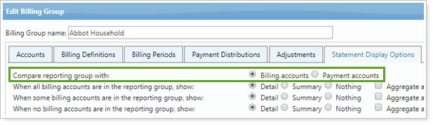 When the reporting group and the billing group membership don't match, this setting allows you to determine who sees details of the bill: accounts that are being billed or accounts that are paying the bill.