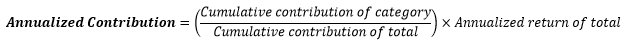 The Contribution column, as it appears on the Position Performance and Performance Attribution reports, is a form of performance attribution that explains how much a position has contributed to the total return for the requested period. The sum of position-level contribution is equal to total return. Contribution is calculated differently for TWR and IRR. Here is how Contribution is calculated for both:
