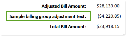 Adjustment Specify the amount of the adjustment for the entire billing group as a dollar amount or as a percent.