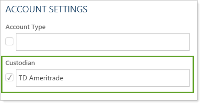 On the Account Settings panel, if you're editing multiple accounts, select the Custodian check box.