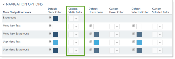 This setting allows you to customize the menu bar background color to the Tamarac standard color. This color is also displayed behind your firm logo and could be visible if the logo includes transparency. For more information on using the default color, see Default Static Color.