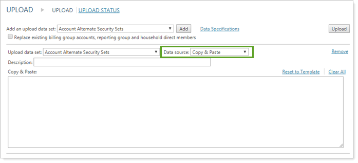 - Copy & Paste: Select Copy & Paste to copy data from a spreadsheet or file and paste it into the Copy & Paste box.
