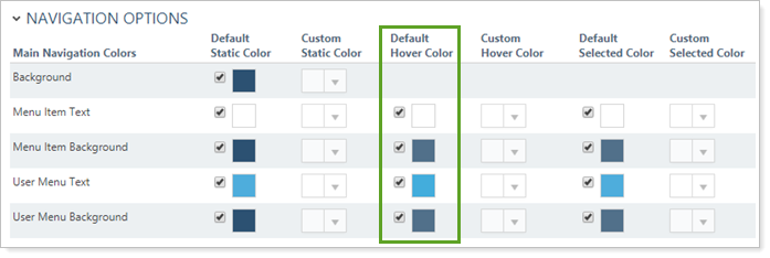 This setting allows you to set the menu item background color to the Tamarac standard color when a user hovers the mouse over that menu item. To customize this color, see Custom Hover Color.