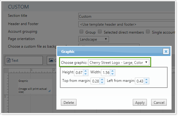 In the Choose graphic list when you add a graphic to a Custom PDF template.