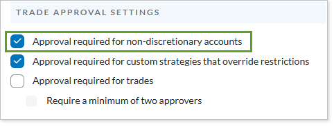 For more information on how trade approvals interact with non-discretionary accounts, see Approve Trades.