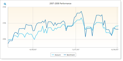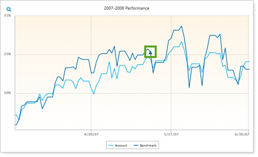 For example, the benchmark changed on 5/23/2007 and, although performance for the new benchmark is displayed after that date, the line chart is not marked to indicate the date of change.