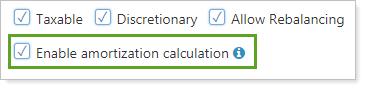 Enabling the amortization calculation will calculate the amortization directly within Tamarac Reporting based on the security and transaction details, as well as the amortization method(s) that have been applied to the security types.
