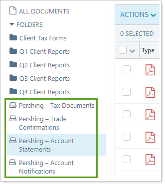 When enabled, your clients' document vault displays the same four Pershing folders available to you, making it much easier for clients to access custodial files.