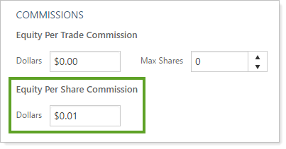 This setting allows you to add a commission charge on a per-share basis.