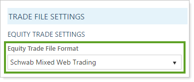 You can select which trade files appear on the Equity Trade File Format list. To learn more, see System Settings: Trade File Settings.
