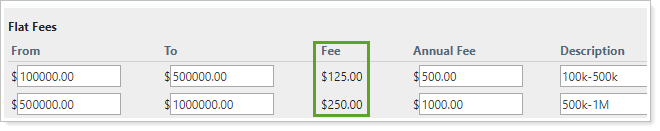 For example, if your billing cycle is quarterly and you enter an annual fee of $1000.00, the fee is $250.00.