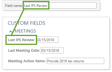 Type a name for the custom field - for example, Last IPS Review.