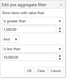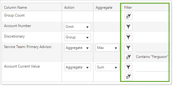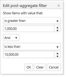 to select post-aggregate filter settings. This filter will only return data against aggregated values that meet the specified criteria.