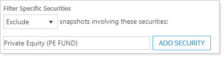 Exclude. The page displays manual security snapshots for all the securities except the one(s) you add to the list. For example, if you add PE Fund, you see manual security snapshots for everything except PE Fund.