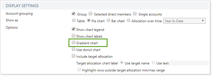To display charts with a gradient, select the Gradient chart check box.