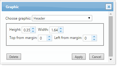 Width: The width of the image. The printed version of your report will always print the actual size of your image, regardless of the width specified or displayed while creating your report.