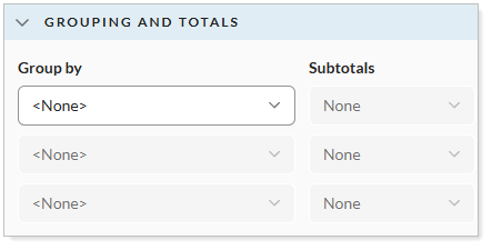 This setting allows you to organize a report by various categories, with up to three levels of grouping. You can also choose to leave Group by blank, and the report will organize listings based on default sorting. Grouping allows you to organize the data in your report various different ways depending on the story you want to tell.