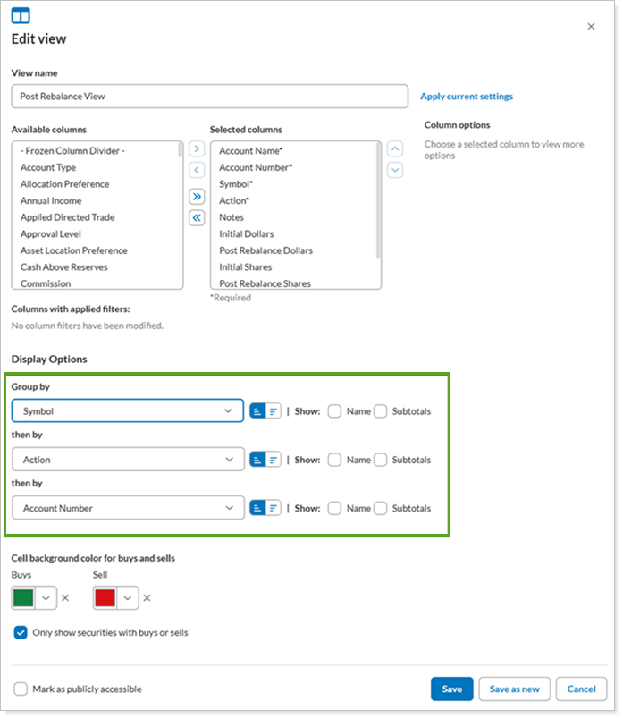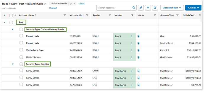 - Only show securities with buys or sells.Select to only show trades in which buys or sells are recommended. When cleared, you can see all positions without recommended trades.