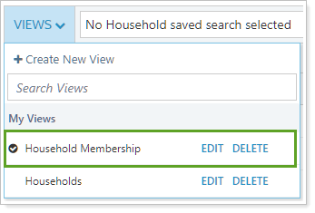 For more information about views on the Households page, see Households Page Actions, Views, and Filters and Using Page Views.