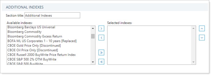 This setting allows you to add the performance any of the firm's available indexes, custom indexes, or blended indexes as a data point for comparison with the account's performance.