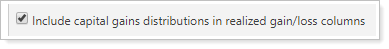 To include capital gains distributions, select the Include capital gains distributions in realized gain/loss columns check box.