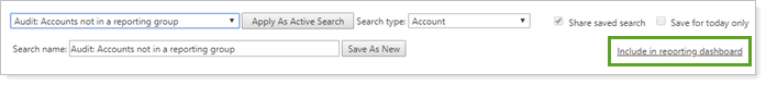 To add a saved search to the Reporting dashboard, click Include in reporting dashboard.