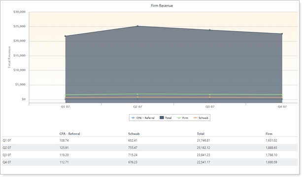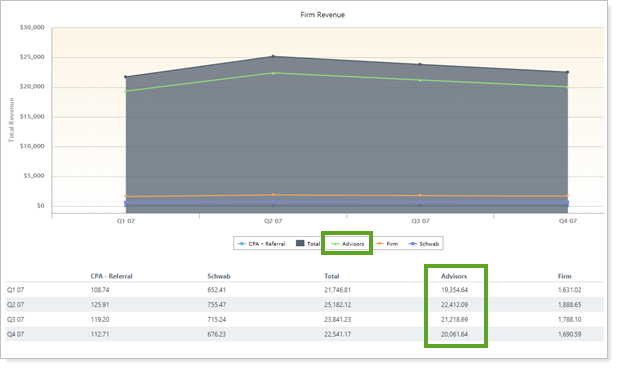 In this example, all revenue allocated to firm users is aggregated as Advisors.