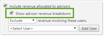 To hide advisor revenue, clear Include Revenue Allocated to Advisors.