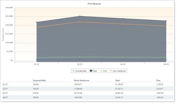 This setting allows you to show or hide billed amounts assigned to Other payees you choose. When you select this check box, the report adds the Other payee revenue lines to the chart and the Other payee revenue columns to the table.